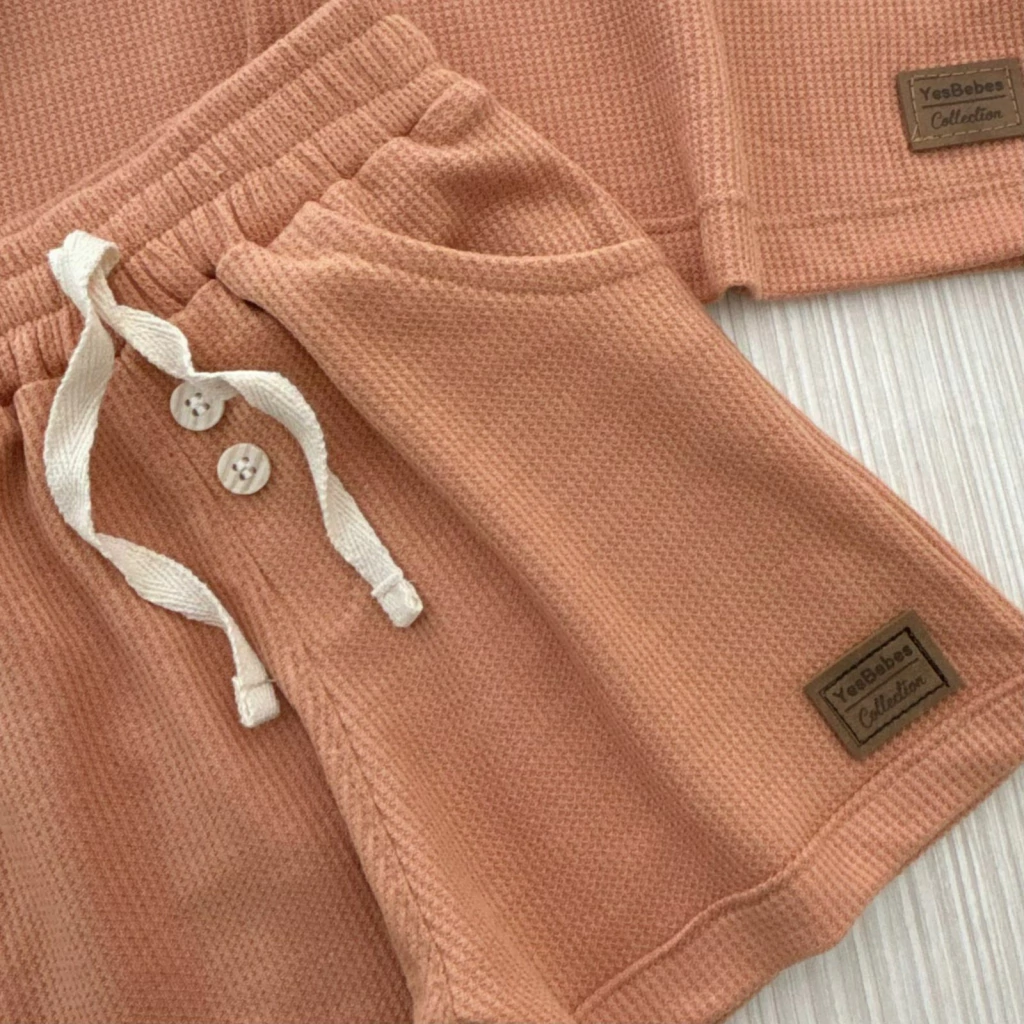 Conjunto de remera y bermuda de waffle premium, un dúo pensado para que tu hijo disfrute del verano con comodidad y mucha onda.